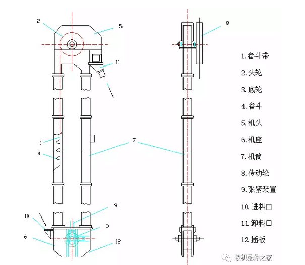 ◆斗式提升機(jī)的外形及結(jié)構(gòu) 斗式提升機(jī)見圖1-1。 ![]()
