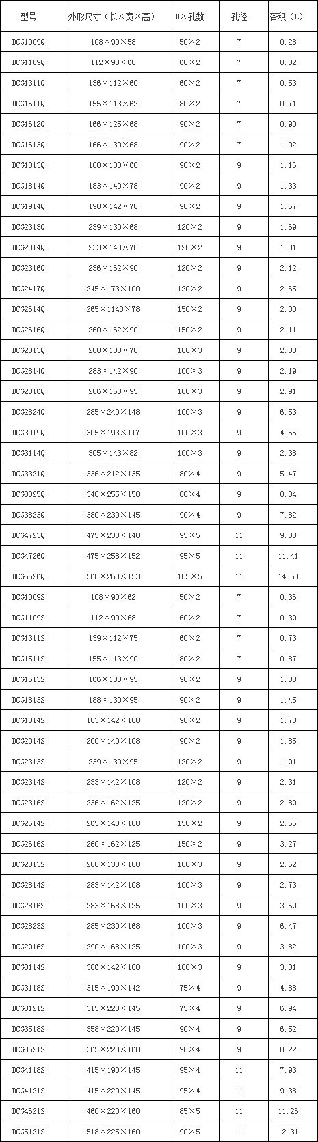 ![]() 整體型優(yōu)質(zhì)鋼材拉伸畚斗規(guī)格及技術(shù)參數(shù):(Q是代表淺型畚斗,S是代表深型畚斗)