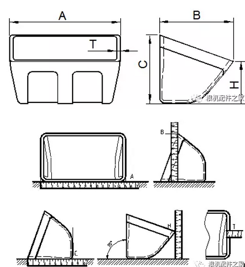 畚斗型號(hào)選擇:根據(jù)物料特性及提升產(chǎn)量選擇合適的型號(hào) 產(chǎn)量計(jì)算=3.6×(I÷A)×V×ψ×ρ I-料斗容積(L);A-料斗間距(m);V-提升速度(m/s) ψ-填充系數(shù);ρ-物料松散密度(t/m3) 根據(jù)物料特性選擇畚斗材質(zhì)。 畚斗的測(cè)量:針對(duì)已有實(shí)物的畚斗進(jìn)行測(cè)量,正確測(cè)量方法如下圖